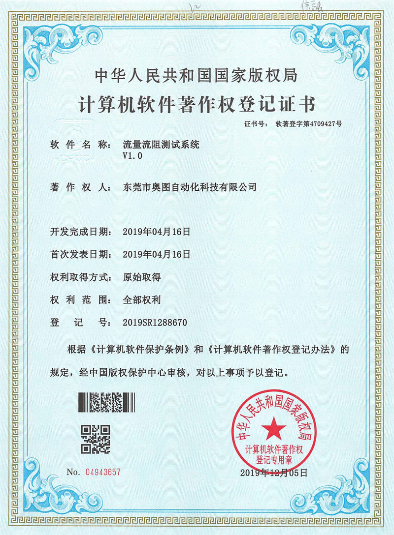 流量流阻測試系統軟件著作權